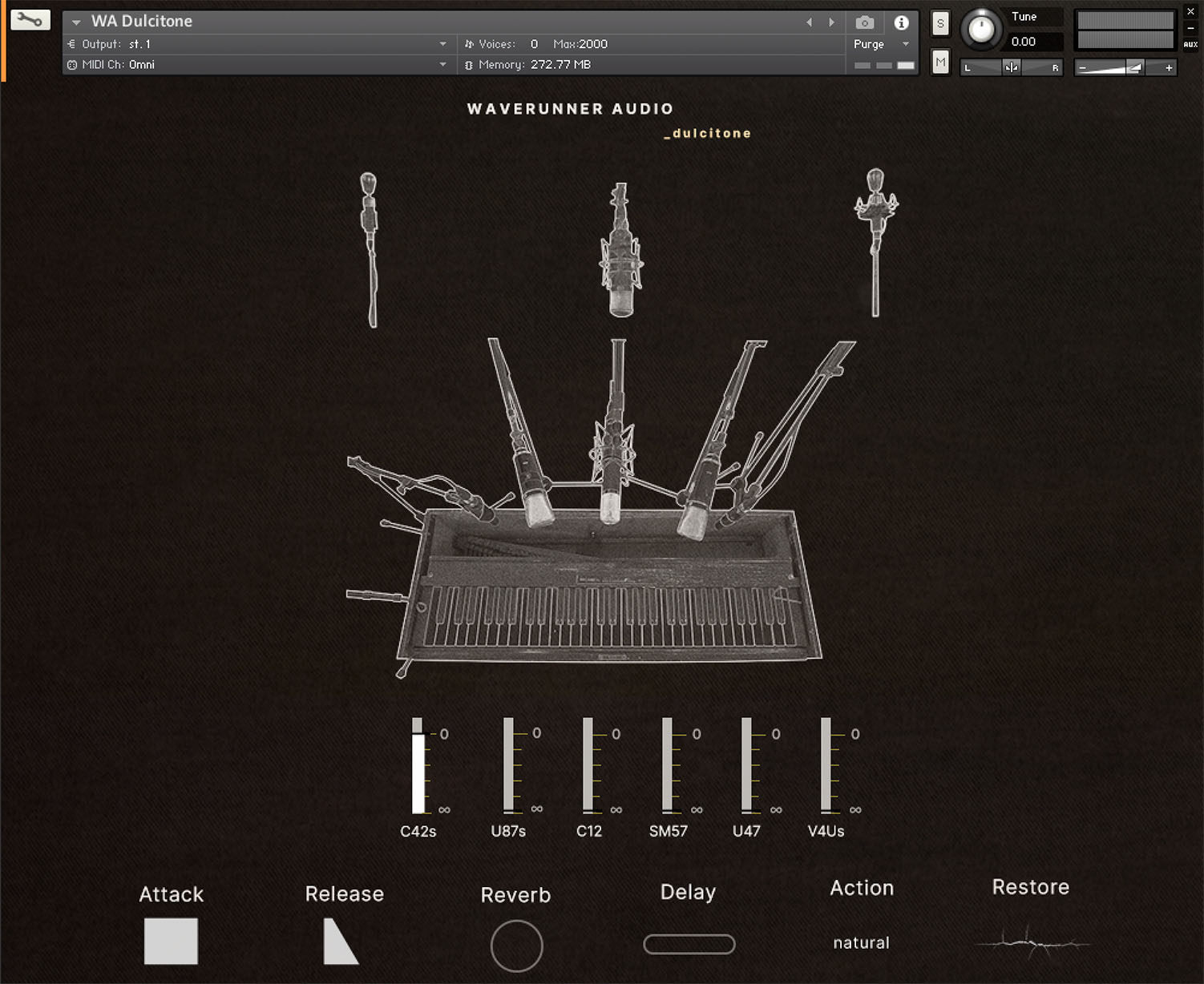 The dulcitone was recorded through multiple, clearly defined microphone paths, each presented in the instrument exactly as it was captured. These specific microphones are labelled accordingly in the interface.